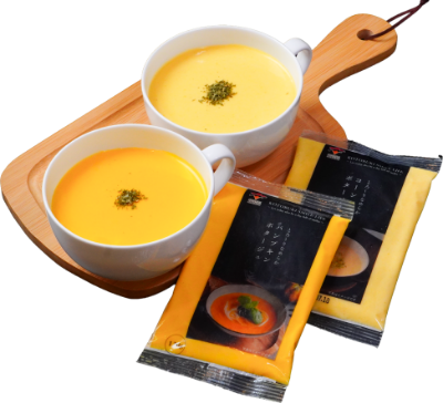 それらも種々検討し、最終的にホテル並みの味・風味を有したポタージュとすることができました。